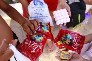 O caruru de Cosme e Damião, tradição presente em várias regiões do Brasil, é uma celebração de fartura e união. Do mesmo modo, a corrida das crianças em busca dos doces distribuídos, prática muito comum nos subúrbios do Rio de Janeiro, se torna memória afetiva de gerações, lembrando que, mesmo diante do racismo e das desigualdades, a vida pode e deve ser saborosa.