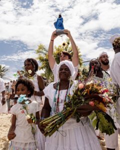 Durante o dia, rodas de dança, cantos e performances culturais conduzem o público ao momento mais simbólico do evento. Em seguida, acontece o cortejo de oferendas para Iemanjá, com flores, perfumes e presentes levados ao mar em reverência à Rainha das Águas.